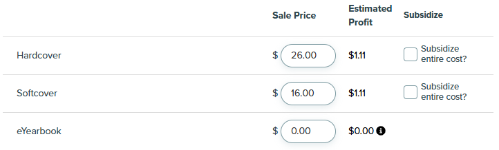 Select the formats you want to offer: Hardcover, Softcover, or eYearbook.