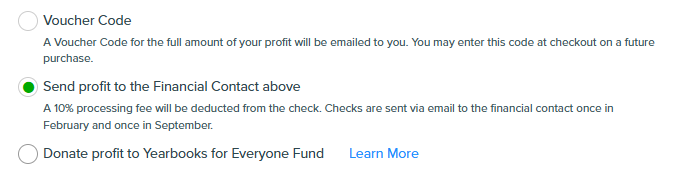Voucher Code - Receive the full amount of your profit in a code that can be used to purchase future yearbooks
